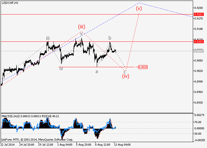 Presumiblemente, la formación de la tercera ola (iii) del impulso ascendente de la onda iii del nivel superior ha concluido. Localmente, es probable que la formación de la corrección abc en la cuarta onda de (iv) está en curso. Si esta suposición es correcta, después de la finalización de la corrección del par continuará creciendo a la quinta onda en el nivel de 0.9200.