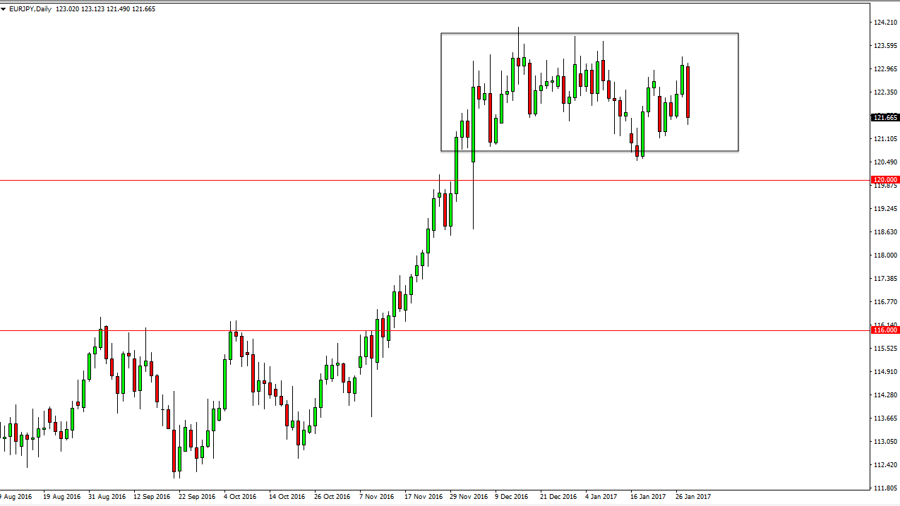 El par EUR/JPY rompió a la baja durante la sesión del lunes, formando una vela muy bajista. El mercado parece que está tratando de llegar hacia el nivel de 120 por debajo, pero creo que hay suficiente apoyo para que nos demos la vuelta y encontremos compradores. En un cierre diario de apoyo, estaré más que dispuesto a comprar este par. Creo que el nivel de 120 ofrecerá una cantidad significativa de apoyo todo el camino hasta 118,50. Dado el tiempo suficiente, espero que este par intente alcanzar el nivel de 125.