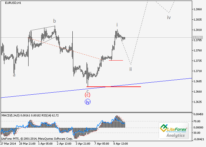 La subida rápida de la pareja durante la jornada de ayer, ha formado en derivaciones de impulso. Parece que el par seguirá aumentando en la quinta ola de triángulo diagonal en el marco de tiempo diario. Corrección local puede desarrollarse como una segunda ola y si el precio no rompe hacia abajo en el nivel crítico de 1.3680, el par seguirá aumentando a los niveles de 1,3960 a 1,4000.