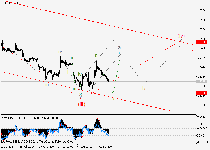 Presumiblemente, la formación de la tercera ola (iii) en la tendencia a la baja se ha completado. Localmente se está formando la cuarta onda (iv). Dentro de esta ola se formó el abc plano al nivel objetivo estimado de 1.3490. Si esta hipótesis es correcta, después de la finalización de la onda (iv) el par continuará bajando a la quinta ola.