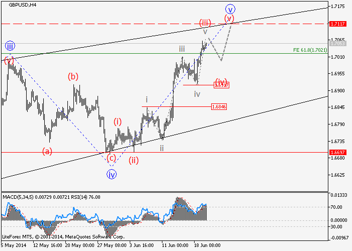 Presumiblemente, la formación del impulso ascendente está todavía en curso en la quinta ola, final de la categoría superior. A nivel local, el impulso de la tercera ola de las categorías inferiores está a punto de terminar. Si esta hipótesis es cierta, en un futuro próximo la pareja volverá a caer a los mínimos recientes de 1.6917 en la cuarta ola del nivel superior. Nivel crítico para este escenario es 1.6917.