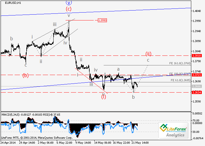 La pareja sigue experimentando la corrección en la segunda ola, que tiene todas las posibilidades para formar plano irregular. A nivel local, la onda b de ii ha completado y la tercera ola de с ii está comenzado a desarrollar. Si el precio no se descompone en el nivel crítico de 1.3634, el par podría subir a los niveles de 1,3768 a 1,3800 en el corto plazo.