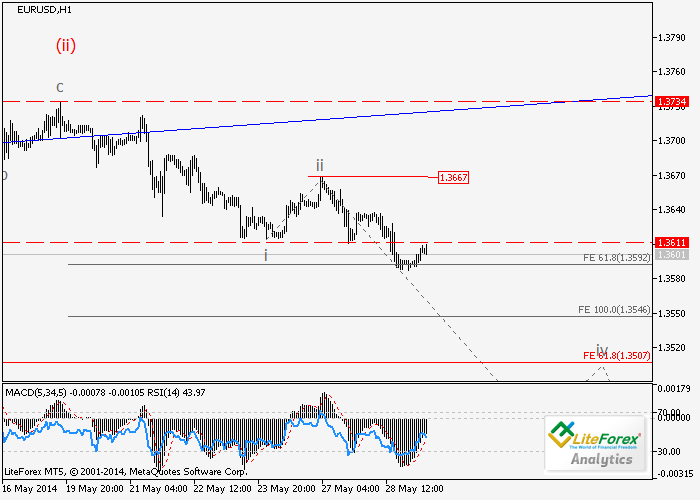 La formación de la tercera ola del impulso bajista presupuesta está en curso. En estos momentos, se está formando la tercera ola de las categorías inferiores iii de (iii). Si esta hipótesis es correcta, y el precio no rompe nivel crítico de 1.3667, el par continuará disminuyendo en la tercera ola (iii) a los niveles de 1,3500 a 1,3400.