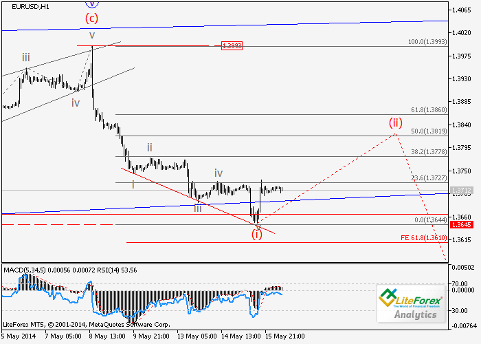 Presumiblemente, la formación del impulso en la primera ola se ha completado. A nivel local, es posible que la pareja se someta a la corrección al alza en la segunda ola hasta el nivel de 50% (1.3820). Nivel crítico para este escenario es 1.3645.