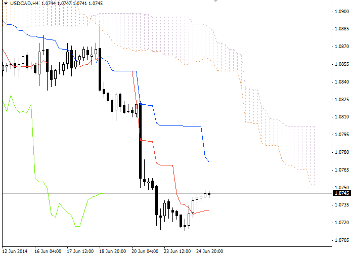 En el gráfico diario, línea Tenkan-sen está por debajo Kijun-sen, ambas líneas son horizontales. La línea Chinkou Span está por debajo de la evolución del precio; la nube actual es descendente. La pareja se ha corregido hacia arriba, sin embargo, la tendencia bajista sigue siendo fuerte. La línea Tenkan-sen es un nivel de resistencia (1.0802). Uno de los mínimos anteriores de la línea Chinkou Span se espera que sea un nivel de apoyo en (1.0623).