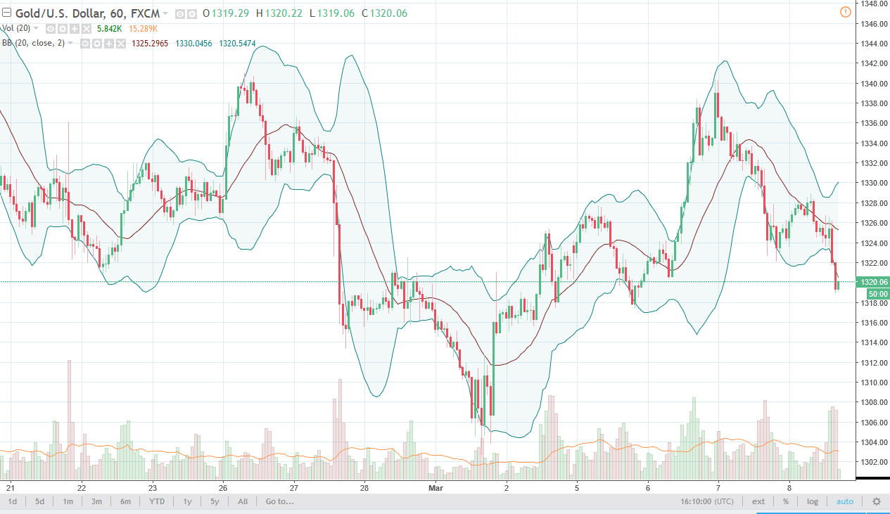 Inicialmente, los precios del oro bajaron un poco durante la sesión del jueves, a medida que el dólar se recuperó. Esto envió a los mercados de oro hacia el nivel de 1320 dólares, un área que ha sido de soporte en el pasado. Debido a esto, creo que el mercado puede rebotar un poco desde aquí, a menos que, por supuesto, el dólar se recupere significativamente. En general, creo en el oro a más largo plazo, por lo que, cuando se produzcan estos movimientos, a menudo ofrecerán oportunidades de compra. El nivel de 1315 también ofrece soporte, así que téngalo en cuenta. Creo que es solo una cuestión de tiempo antes de que los compradores entren y esos compradores deberían ver estos precios como una oportunidad.