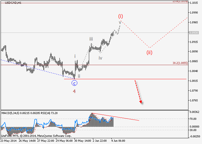 Presumiblemente, la formación de la gran corrección en la cuarta de onda, que se llevó a una forma de zigzag, ha completado. A nivel local, impulso ascendente se ha formado como la primera ola de derivaciones (i). Si esta hipótesis es correcta, después de la corrección local en la segunda ola (ii), el par puede continuar creciendo y la estructura de la quinta onda del nivel superior se puede desarrollar.